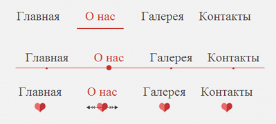 Очередное очень красивое меню на CSS3. В меню присутствует: Скользящий эффект для меню при наведении, который более известен, как lavalamp эффект. Эффект реализован только на CSS с помощью transitions и селектора ~. В полном материале вы можете увидеть несколько видов меню. Самое приоретентное пожалуй на данный момент это меню с пронзающим сердце стрелой. Сердце состоит из двух элементов, левая половинка :before, а правая реализована с помощью псевдо-элемента :after. У a:after есть свойство z-index со значением 1, что располагает половинку сердца над стрелкой.