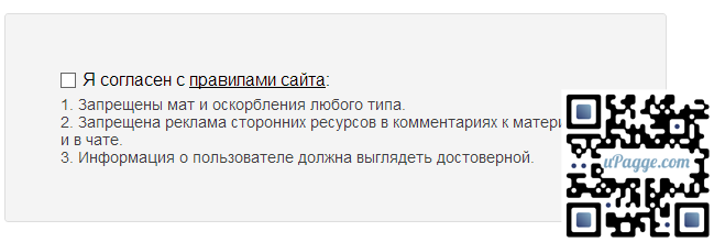 Перед регистрацией пользователь соглашается с правилами и только потом показывается форма регистрации. Скрипт работает для локальных и uid регистраций